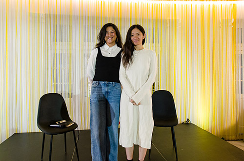 Moderator Kristina Woo and Hamnet co-writer-director Chloé Zhao. Photo by Moises Marquez.